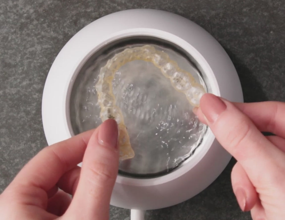 Ganz und gar nicht – obwohl der Pro eine marktführende Reinigungskraft bietet, ist die Ultraschallreinigung vollkommen schonend. Dabei entstehen Millionen winziger Mikrobbläschen, die die gesamte Oberfläche deiner Zahnschiene sanft, aber gründlich reinigen, ohne sie zu beschädigen. Der Dental Pod Pro ist so entwickelt, dass er alle Materialien sicher reinigt – von Metall bis hin zu transparentem Aligner-Kunststoff.